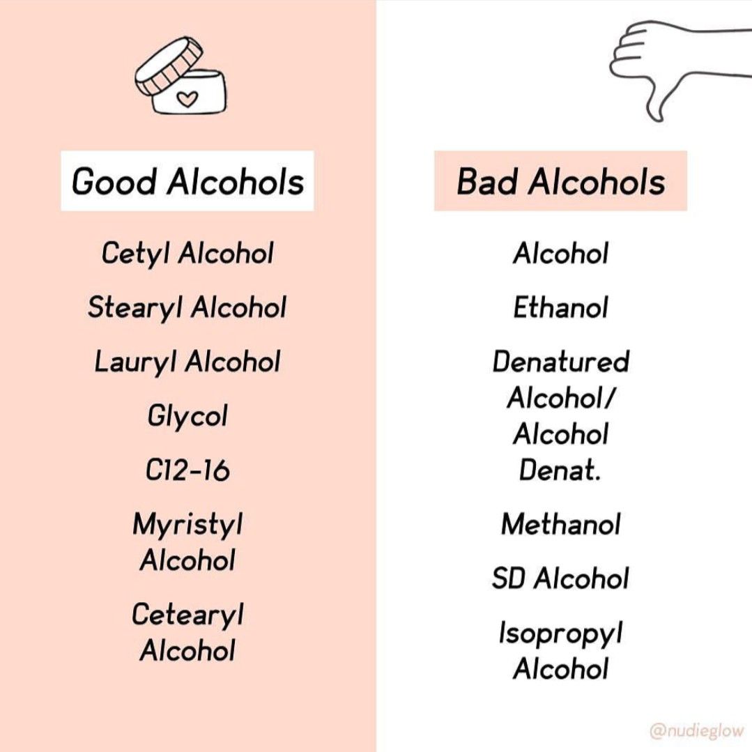 One thing no one thinks about that is in your skin care products is ALCOHOL. Alcohol is one thing that I look for in the ingredients list when I buy or use any product that I put on my face. SD alcohol, denatured alcohol, isopropyl alcohol are types of alcohol that, in the long run, will have negative effect on the skin. On the other hand, fatty alcohol is beneficial for the skin. I always try to use alcohol free products because honestly, it’s kind of scary when I see that a product contains alcohol. I always try to steer clear of products containing alcohol. Seeing a product that says, “alcohol-free,” is good sign!